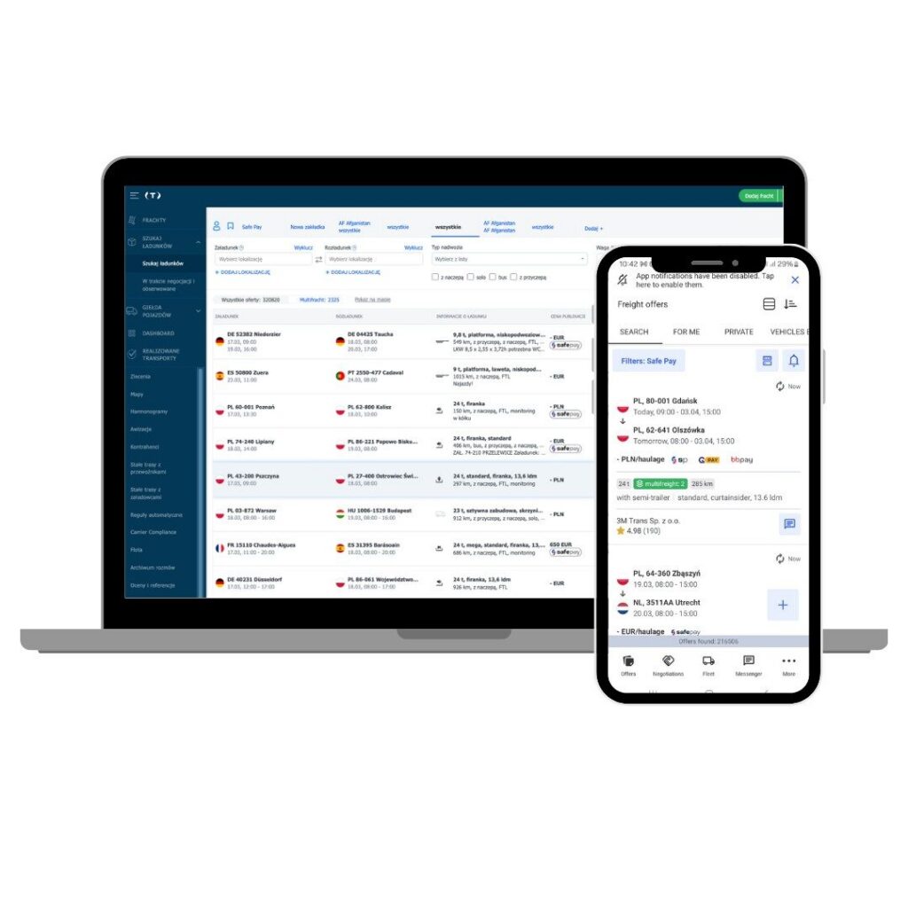 Największa giełda ładunków w Europie Środkowo‑Wschodniej — także w telefonie.