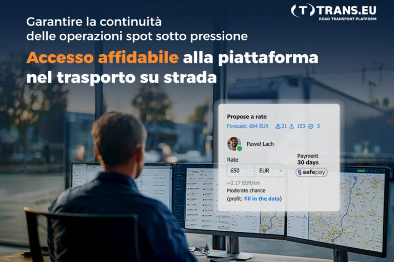 Quando il mercato cambia dinamicamente, i vettori hanno bisogno di strumenti che funzionino senza interruzioni. Un accesso affidabile significa meno chilometraggio vuoto, cooperazione più sicura e un migliore controllo delle operazioni quotidiane.