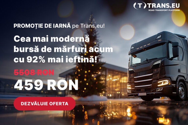 Cererea pentru transportatori crește, iar sfârșitul anului aduce o activitate logistică record. De aceea, acest WINTER OFFER este momentul ideal pentru a începe să folosești Trans.eu — aproape fără costuri sau riscuri.