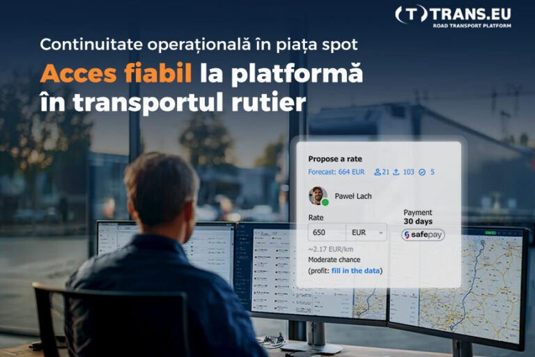 Aici intervine Trans.eu. Platforma oferă acces constant la oferte de transport verificate din întreaga Europă, ajutând transportatorii să își mențină activitatea chiar și în perioade de cerere ridicată sau de ofertă limitată.”